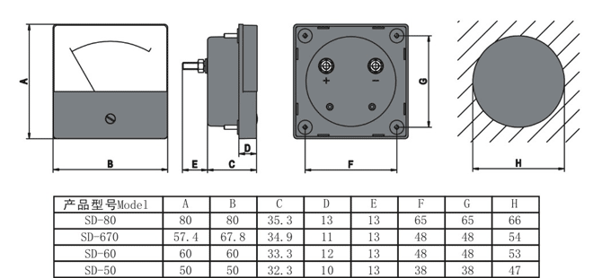 產(chǎn)品性能:所有儀表均為純白色絲網(wǎng)印刷刻度盤。機芯采用鋁合金和高性能導(dǎo)磁材料組成,具有良好 的抗震耐溫能力。表蓋由透明PMMA塑料制成,耐溫可達到85℃;底座由PA66或阻燃PA66塑料制成, 耐溫可達到120℃;耐壓均高于2000V。安裝采用帶墊鐵質(zhì)螺栓四角緊固,即簡單又牢固。